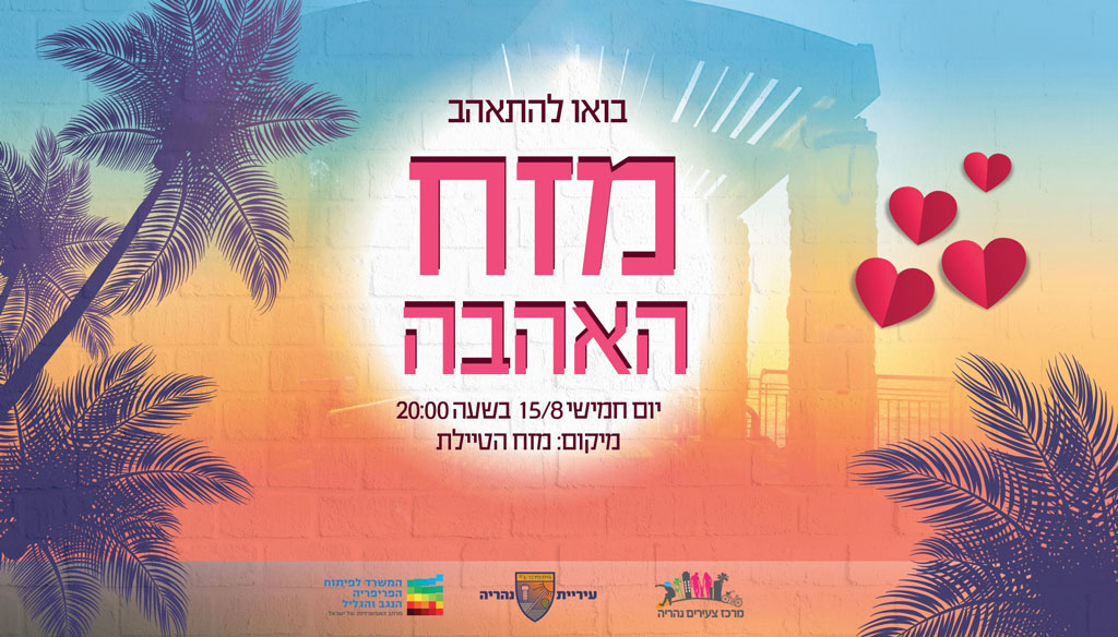 לראשונה בנהריה יתקיים "ליל אהבה במזח" ביום חמישי 15.8.19 ערב ט"ו באב ויפתח סופ"ש שלם בסימן אהבה עם מופע של אביב גפן והתעויוט, השקת מזח